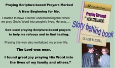 We provide Scripture-based prayer Resources to help you pray God's word back to Him, and to touch others for the Lord. These resources have been used in a prayer setting or at home; they are practical, easy to use and impacting.